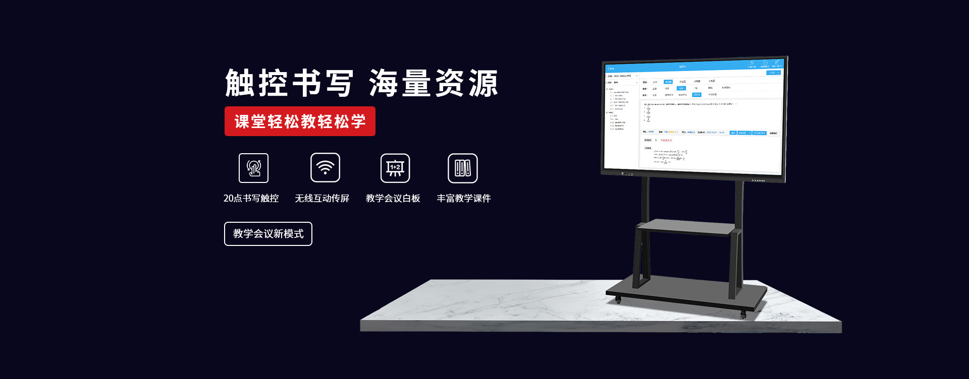 〔教育智慧黑板〕 是新一代教學顯示設備,具有高清顯示、高精度觸摸操作應用,黑板書寫教學功能與一身;內(nèi)置安卓、windows系統(tǒng),可滿足教學不同的應用軟件使用;純平面書寫黑板,適應粉筆,無塵粉筆、水性粉筆書寫,適合不同環(huán)境應用;觸摸切換書寫黑板與屏幕顯示,可讓老師快速進行教學應用切換;純平面外觀,解決傳統(tǒng)推拉黑板的笨重,復雜的結(jié)構(gòu)特點,大大提升了教師授課的體驗感和演示效果。